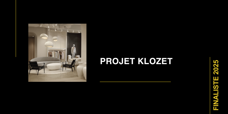 Implantée à Moncton, au Nouveau-Brunswick, la boutique Klozet incarne la volonté de sa fondatrice de transformer un espace commercial conventionnel en une vitrine immersive et raffinée pour sa marque de vêtements haut de gamme. L’aménagement devait composer avec une architecture existante peu flexible — colonnes en béton brut, plafond encombré de conduits et configuration rectangulaire — tout en répondant à un double objectif : magnifier les collections tout en offrant une expérience apaisante et fluide aux client·es. L’espace de 4000 pi² devait aussi inclure une zone discrète de travail pour la fondatrice, dans un projet mené avec un budget limité mais une grande liberté créative. C’est cette vision partagée, fondée sur la confiance et la sensibilité du détail, qui a permis à l’équipe de conception de transformer les contraintes techniques en occasions d’expression architecturale.